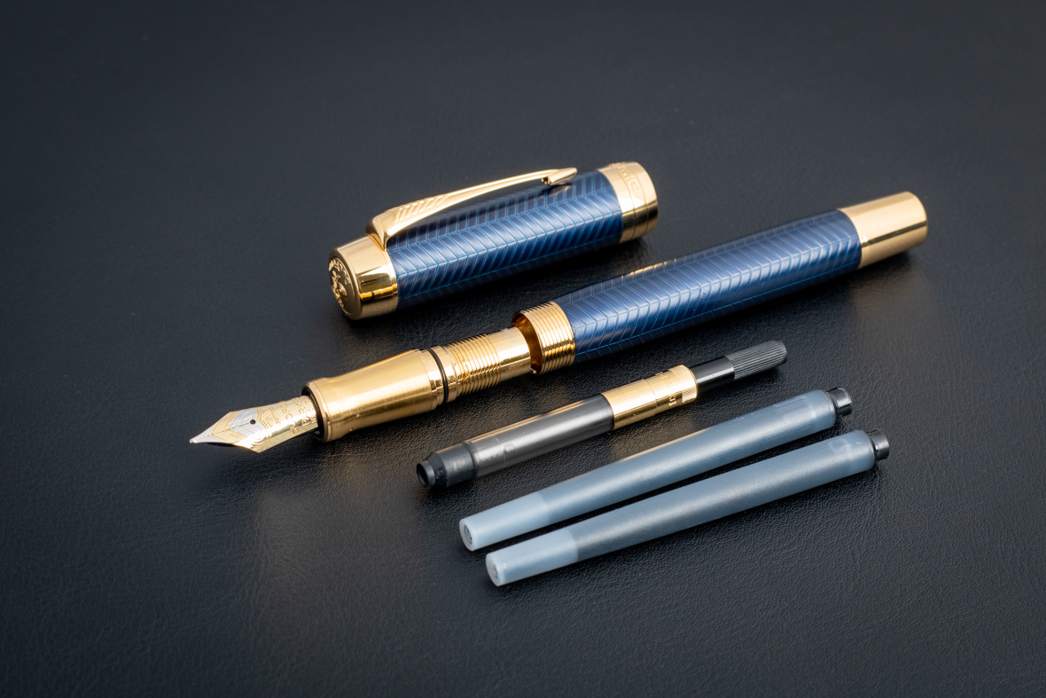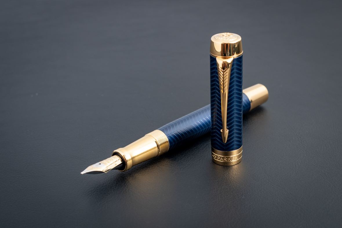 Перьевая ручка Parker Duofold Prestige Centennial Blue Chevron GT (M) от официального дилера Parker в Черкесске. Вы можете дополнительно заказать гравировку, которая подчеркнет Вашу оригинальность и придаст памятность статусному подарку. Все ручки Паркер поставляются в фирменном футляре.